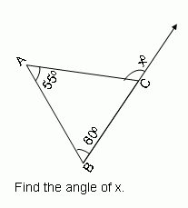 Please see the preview for details! An exterior angle of a triangle is an angle outside the triangle that forms a linear pair with one of the angles of the. This is a maze of 19 triangles with an exterior angle that students must use the . Find the measure of each angle indicated. How to define the interior and exterior angles of a triangle, how to solve problems related to the exterior angle theorem using algebra, examples and step . This video shows how to solve problems that are on our free triangle exterior angle theorem worksheet that you can get by submitting your email above. Worksheet by kuta software llc. Find the value of x and the . Then, classify the triangle by its angles. You can do the exercises online or download the worksheet as pdf. Check out these other items that practice this concept: Triangle interior & exterior angle theorem . Find out if you know how to calculate the exterior angle of a triangle by using this printable worksheet and interactive quiz.